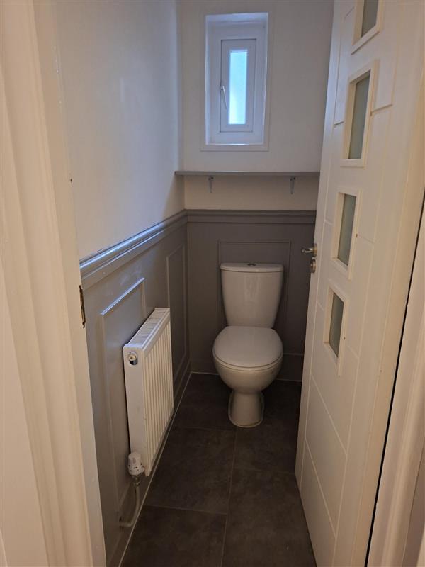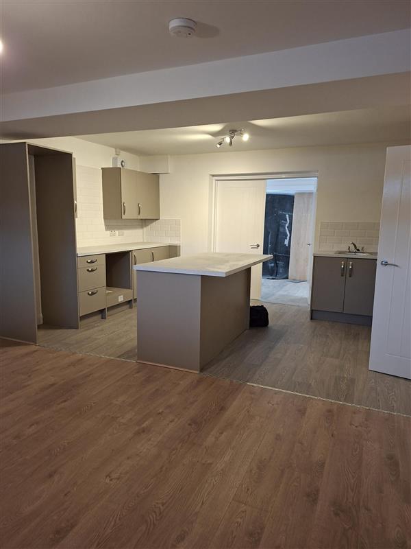It has an open plan lounge and kitchen. The kitchen is newly fitted and there is an electric oven and hob, kitchen island, under stairs storage and downstairs toilet.
